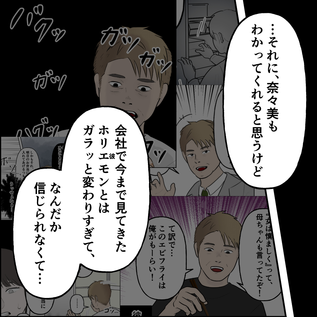 【スカッと】食い尽くし系モラ夫が止まらない!【5】 2023/10/14 ブログネタ:【コンテスト】『スカッとエピソードブログ大賞 with ホリエモン』 に参加中! 【最初から読む】 【前回のお話】 ※ (応募条件の1つとして)ホリエモンさんが登場人物を演じる形で登場していますが、ストーリー自体は完全フィクションです!※現在、ブログのコメント欄は閉鎖していますが、Instagramではコメント欄・DM開放してますので、ご意見・ご感想はそちらにお願いします!読者の皆さんの声に支えられてます…いつも本当にありがとう!!!!!【次の話はこちら👇👇】 【👇👇他の連載作品はこちら👇👇】 ★コメントや拍手、とっても励みになります ありがとうございます~!!! InstagramもよかったらフォローしてねView this post on InstagramA post shared by ほや助【ポンコツ失敗談・キモ怖体験談】 (@hoyahoyasuke)↓↓↓ランキング参加中です!↓↓↓にほんブログ村にほんブログ村★投稿を最速でお知らせ!!ブログリーダーはこちらから↓ 「創作シリーズ」カテゴリの最新記事 タグ :#コミックエッセイ#エッセイ漫画#漫画#絵日記#スカッと#スカッとする漫画#漫画が読めるハッシュタグ#モラハラ#モラ夫#食い尽くし系 < 前の記事次の記事 >