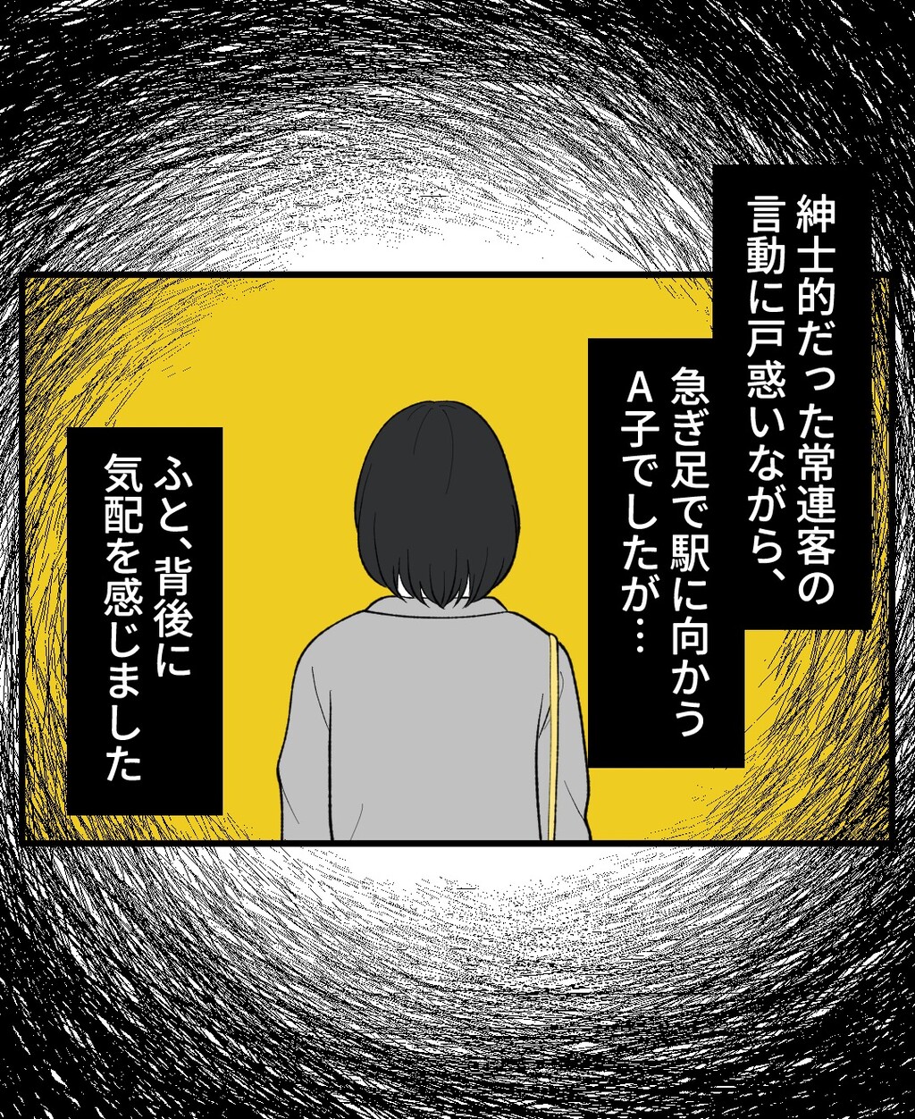 身近で起こった怖〜い話【見つめ続ける常連客・5】 2025/11/17 【前回の怖い話】 kindle始めました✍️アプリ登録不要&広告少なめで一気読み▼👉 次のお話はこちら 皆さんの拍手が力になります!よかったら応援宜しくお願いします♡【👇👇他の怖い話はこちら👇👇】 kindle始めました✍️アプリ登録不要&広告少なめで一気読み▼ 【👇👇他の連載作品はこちら👇👇】 ★ライブドアアプリで更新通知が受け取れます↓更新情報などは Instagram のストーリーズに上げているので、よかったらフォローをお願いします!↓↓↓ランキング参加中です!↓↓↓ 「実体験シリーズ」カテゴリの最新記事 タグ :#コミックエッセイ#エッセイ漫画#漫画#絵日記#マンガが読めるハッシュタグ#怖い話#ヒトコワ#心霊#ストーカー < 前の記事次の記事 >