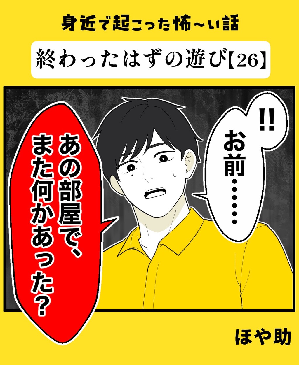 身近で起こった怖〜い話【終わったはずの遊び・26】 2026/04/07 【前回の怖い話】 kindle始めました✍️アプリ登録不要&広告少なめで一気読み▼ 👉 次のお話はこちら皆さんの拍手が力になります!よかったら応援宜しくお願いします♡【👇👇他の怖い話はこちら👇👇】 kindle始めました✍️アプリ登録不要&広告少なめで一気読み▼ 【👇👇他の連載作品はこちら👇👇】 ★ライブドアアプリで更新通知が受け取れます↓更新情報などは Instagram のストーリーズに上げているので、よかったらフォローをお願いします!↓↓↓ランキング参加中です!↓↓↓ 「実体験シリーズ」カテゴリの最新記事 タグ :#コミックエッセイ#エッセイ漫画#漫画#絵日記#マンガが読めるハッシュタグ#怖い話#ヒトコワ#心霊 < 前の記事次の記事 >